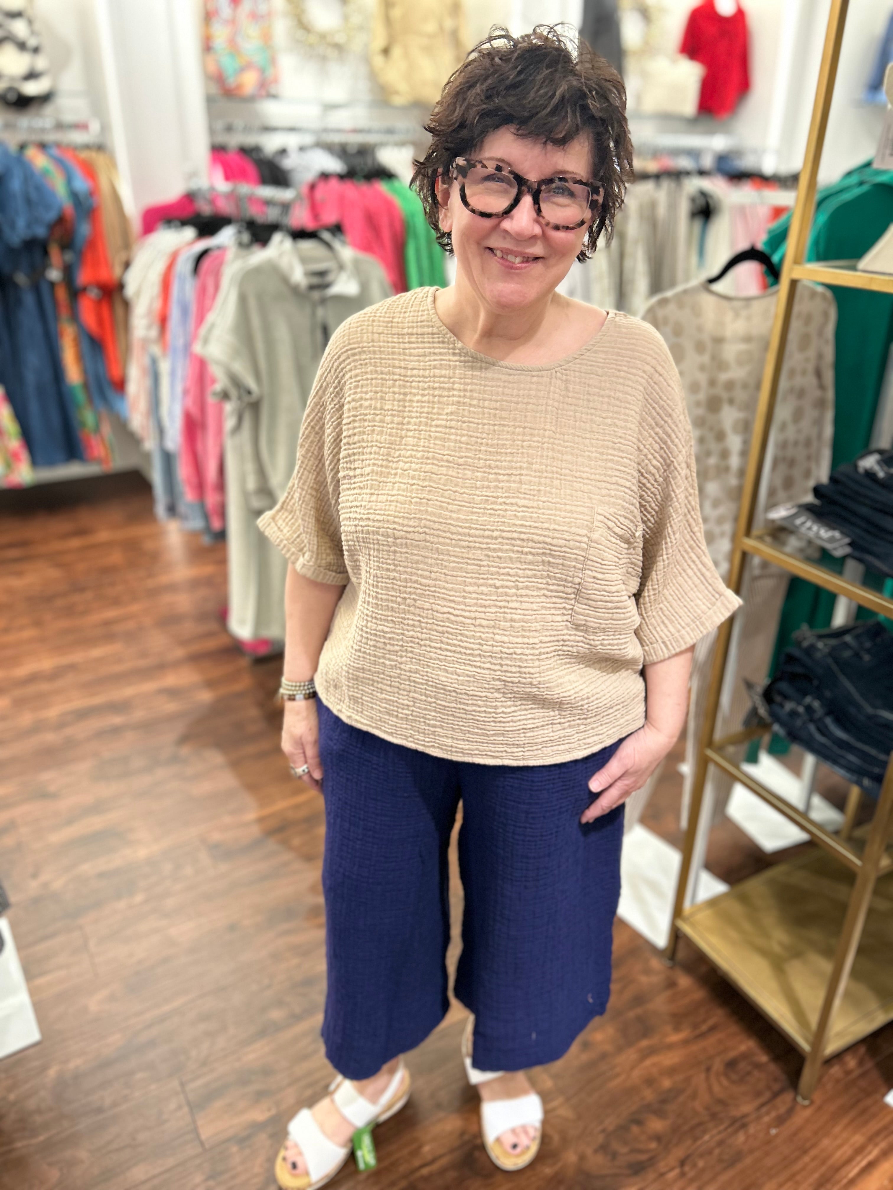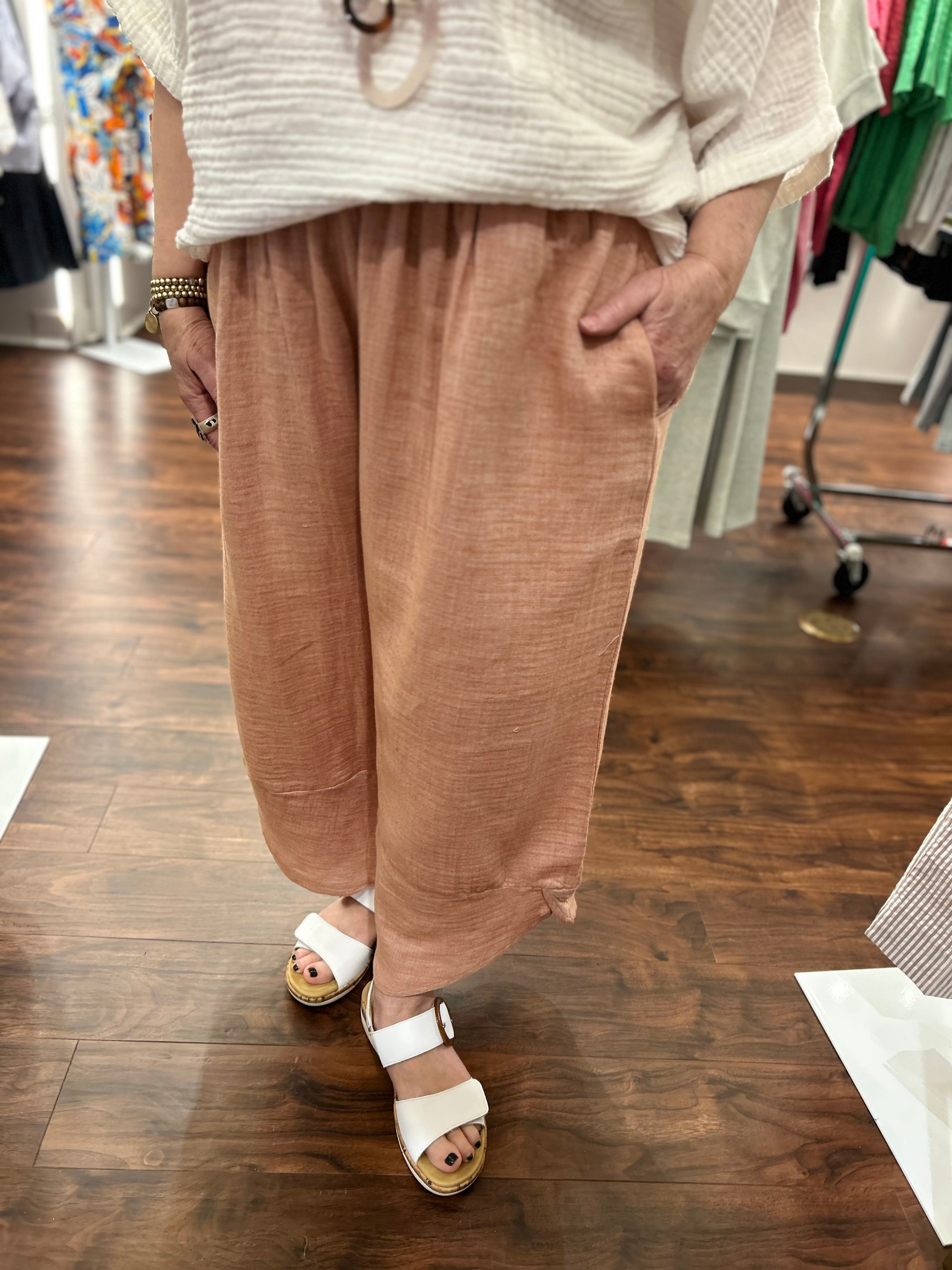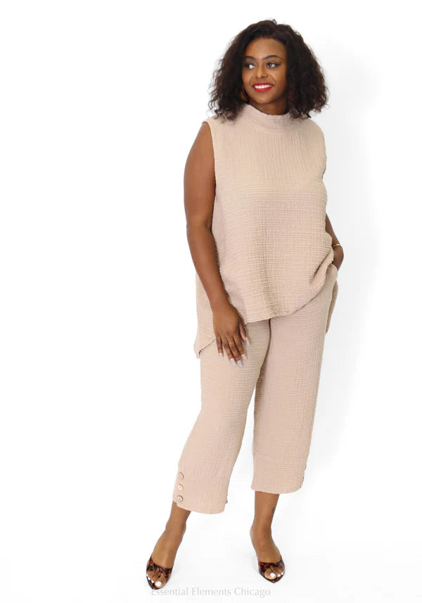 Renuar R11015 Woven Wide Leg Cropped Pants
