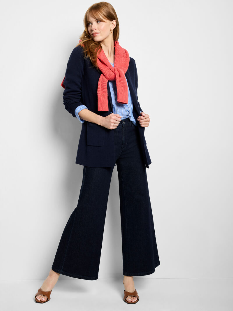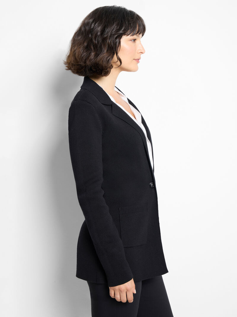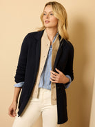 The feel of knit meets iconic blazer styling. Made from a supremely comfortable cotton blend, this piece brings a layer of elegance to the 9-5, going out, casual events, and your every day. Mindfully Made from our "no waste" knitwear, eliminating textile waste.
