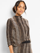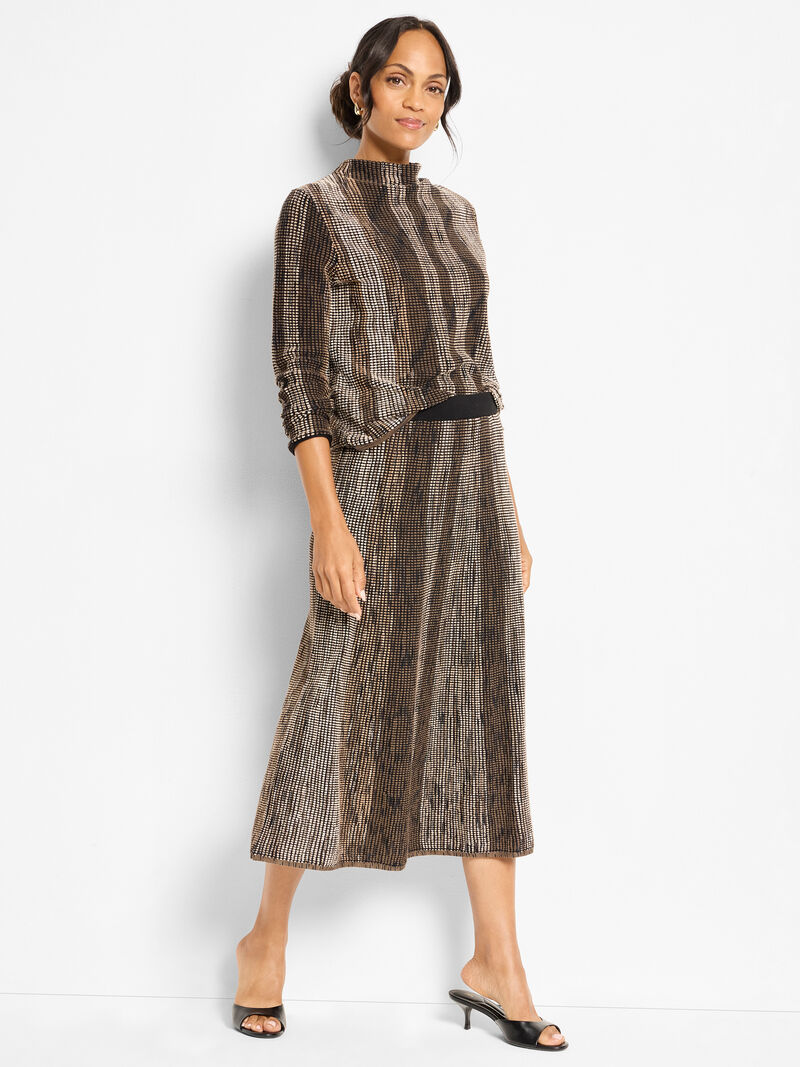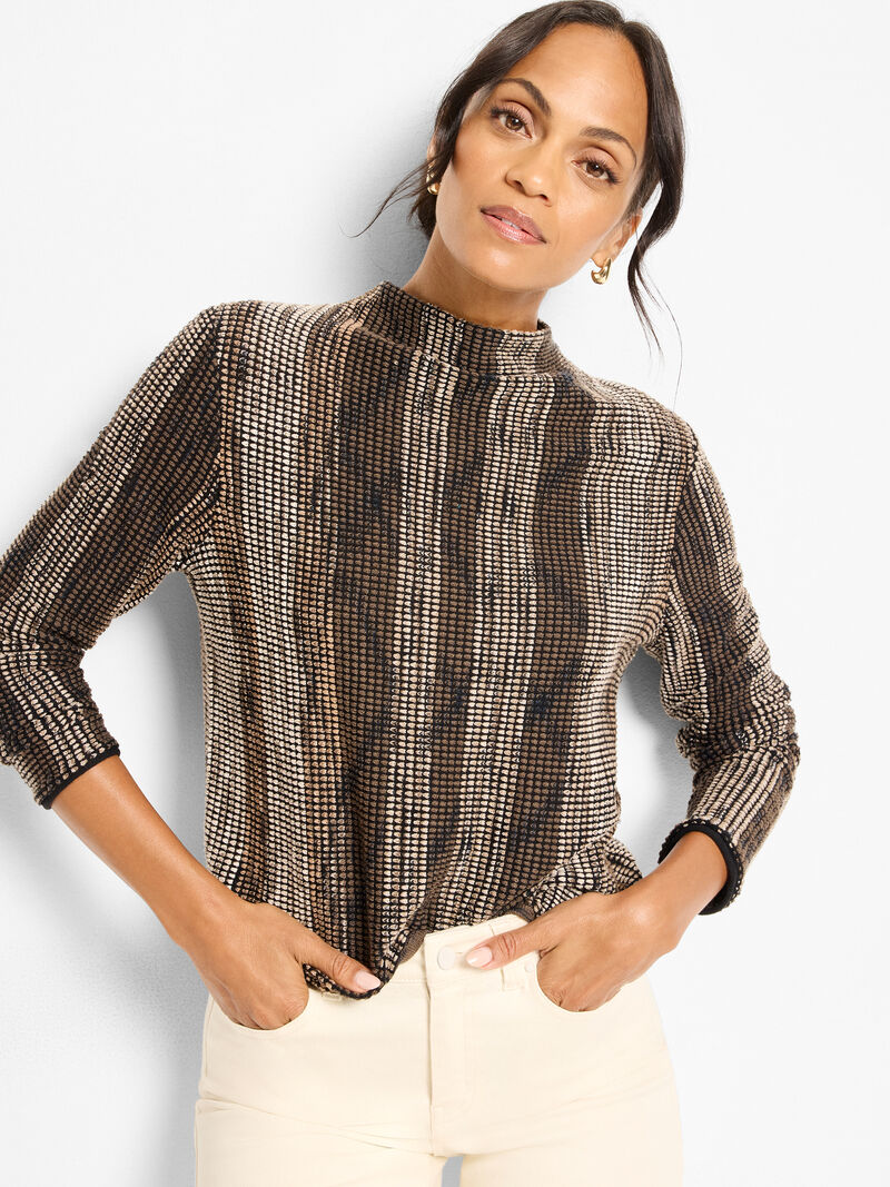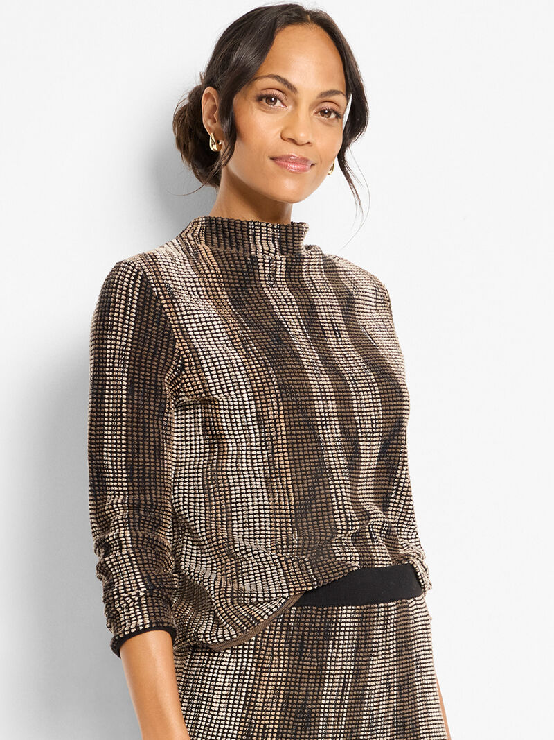 Elegant, sophisticated, and unlike anything else in your closet. Our knit experts went all-in here: combining poppy pixel knit technique and five different kinds of space dye yarn to create the stunningly unique mélange of color and pattern. The funnel neck finish adds one last touch. Mindfully Made from fully fashioned knitwear that eliminates textile waste.