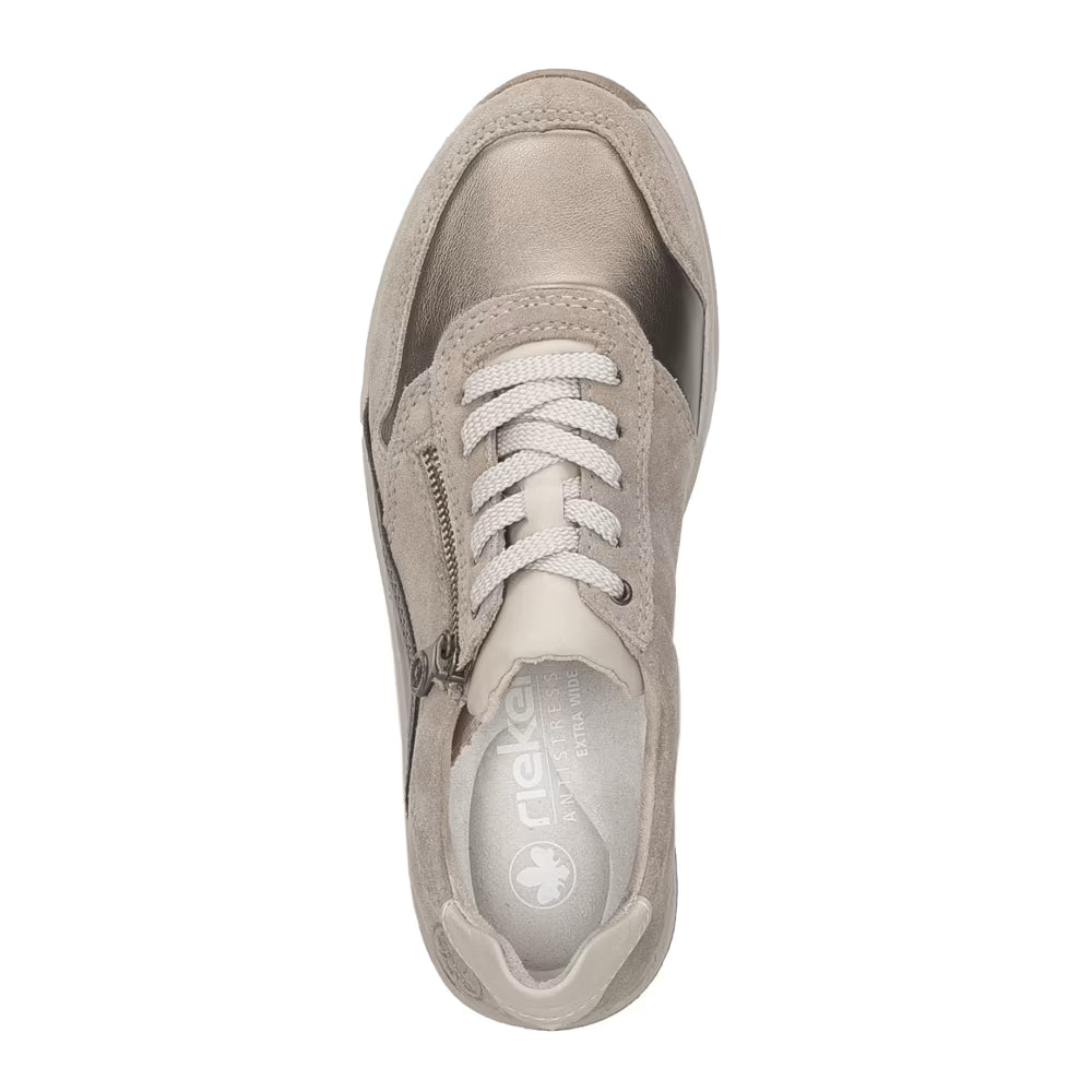 Step out in style with the Rieker N8114 Doerte Sneaker, designed for women who love a trendy look without sacrificing comfort. Featuring a clever mix of materials with subtle shine and a discreet logo, these sneakers catch the eye softly. The combination of laces and a handy zipper lets you slip them on easily and get the perfect fit. Inside, a soft, shaped, removable insole keeps your feet happy all day, while the higher, stable sole absorbs shocks and keeps you confidently on the move. Perfect for busy days or casual outings, these shoes bring playful style and lasting comfort together.