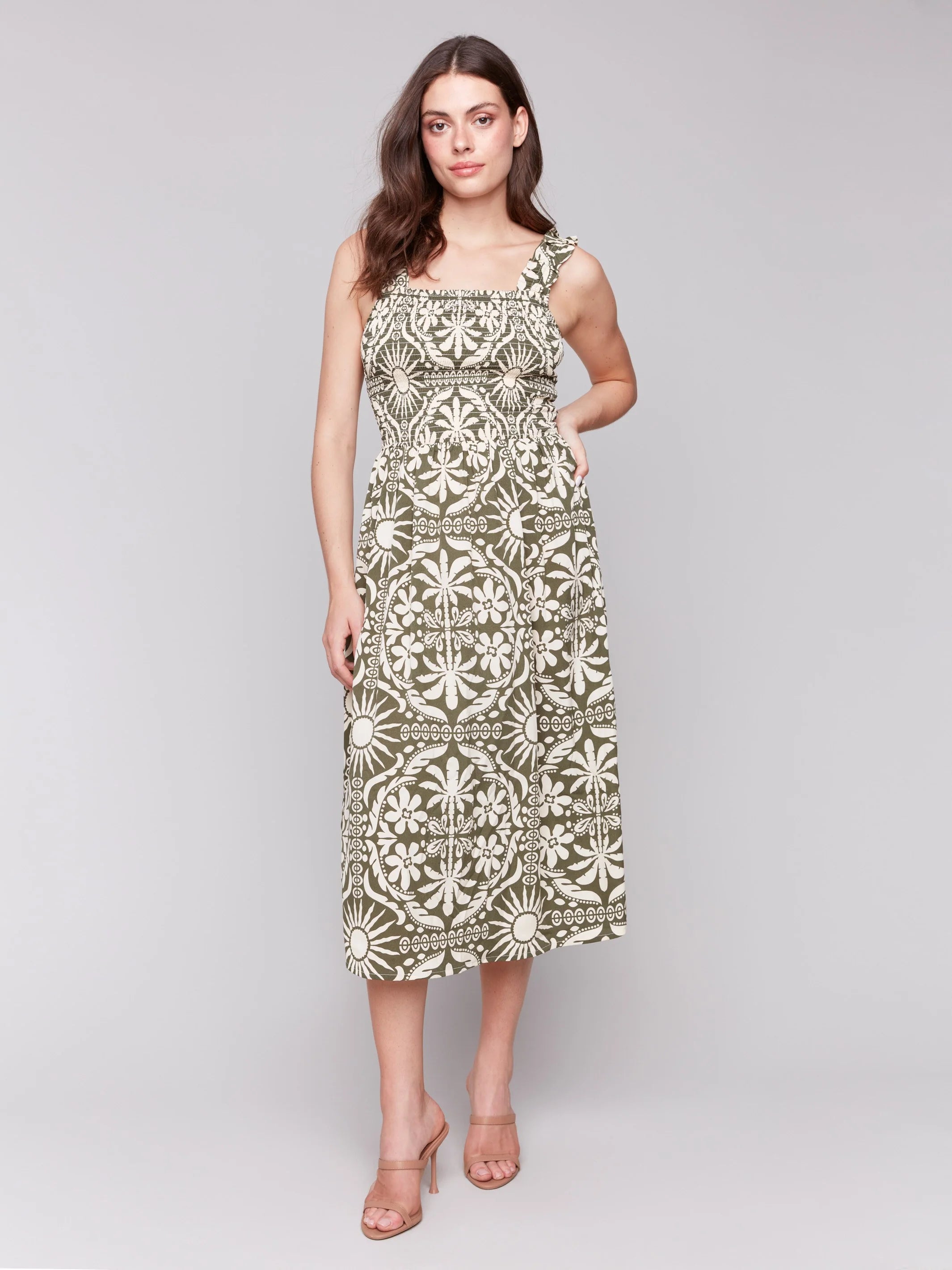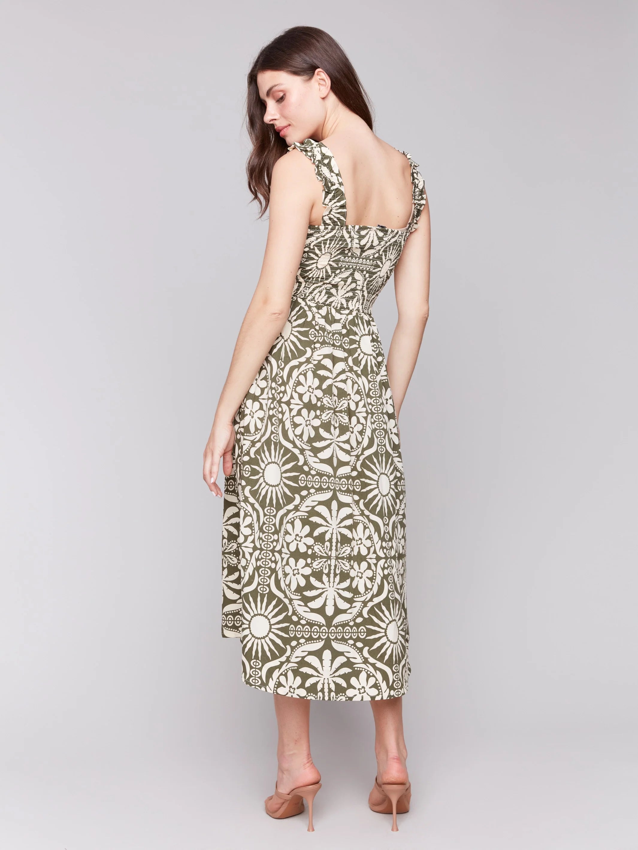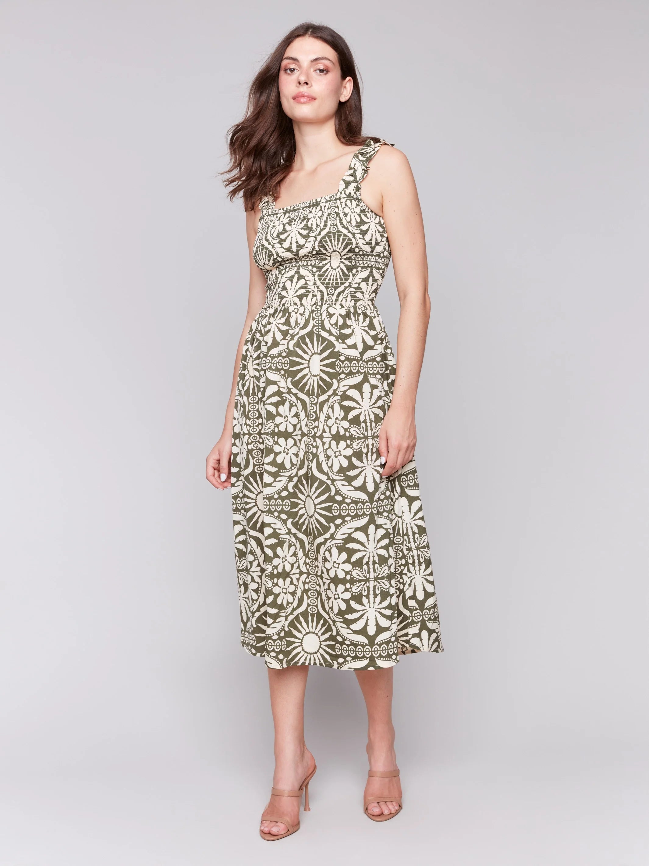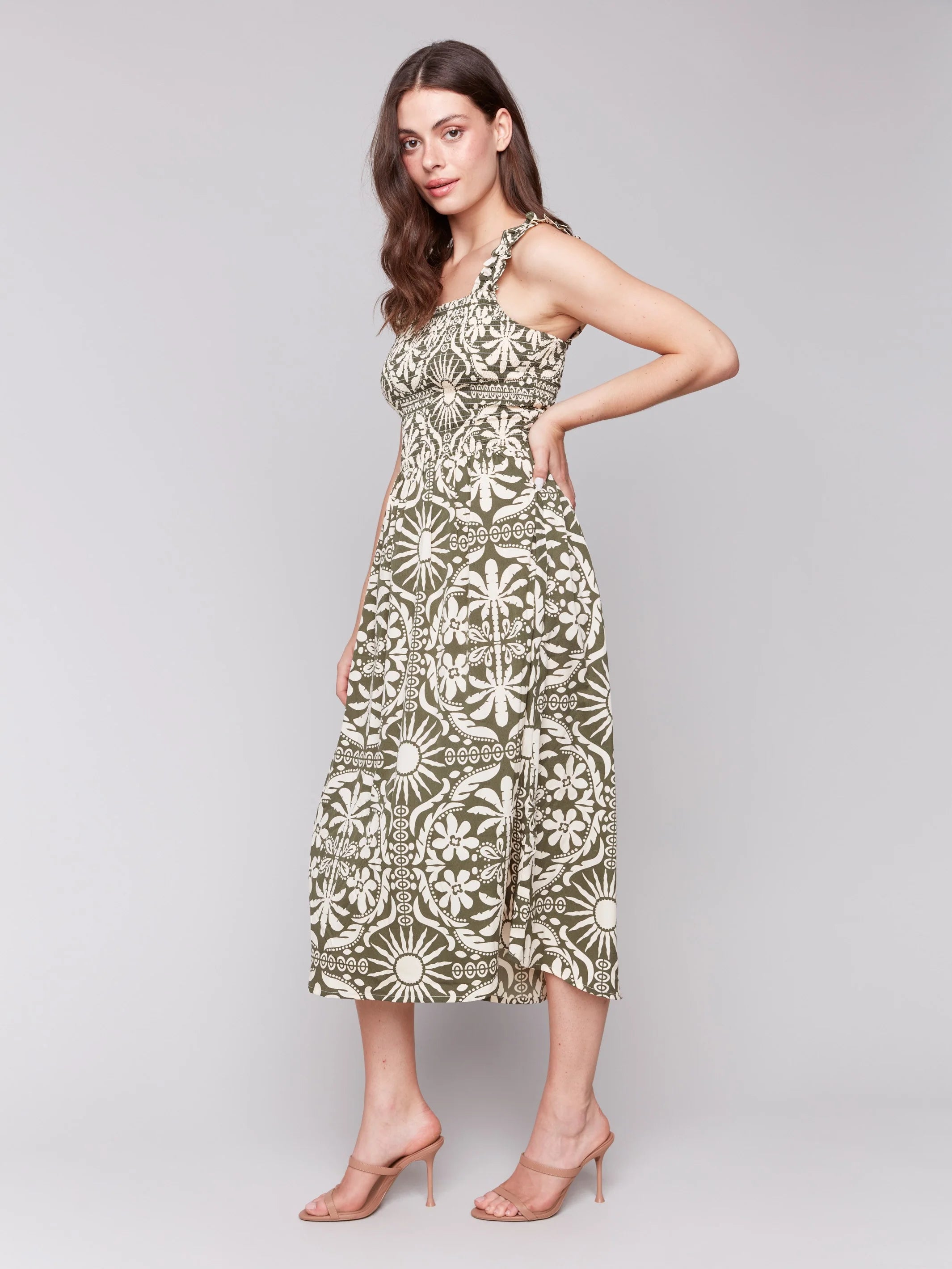 FINAL SALE Charlie B C3198P Printed Sleeveless Midi Dress with Shirring Detail