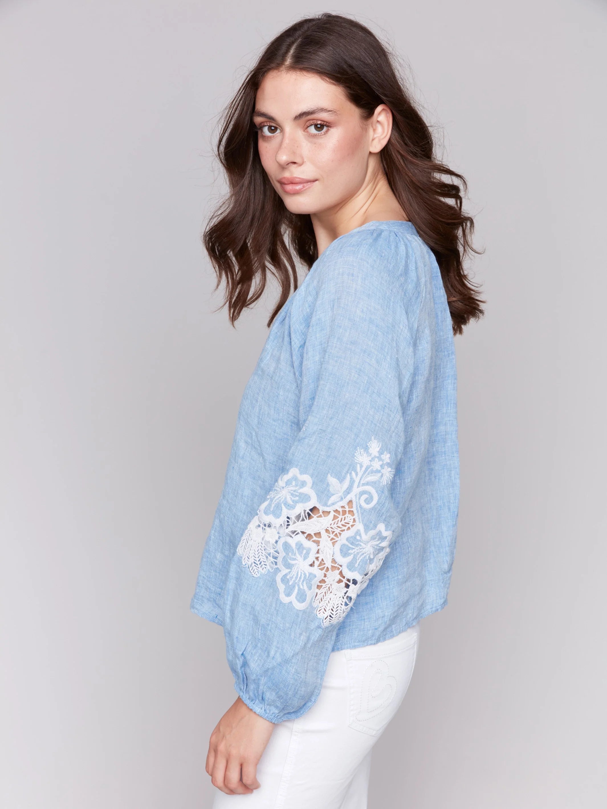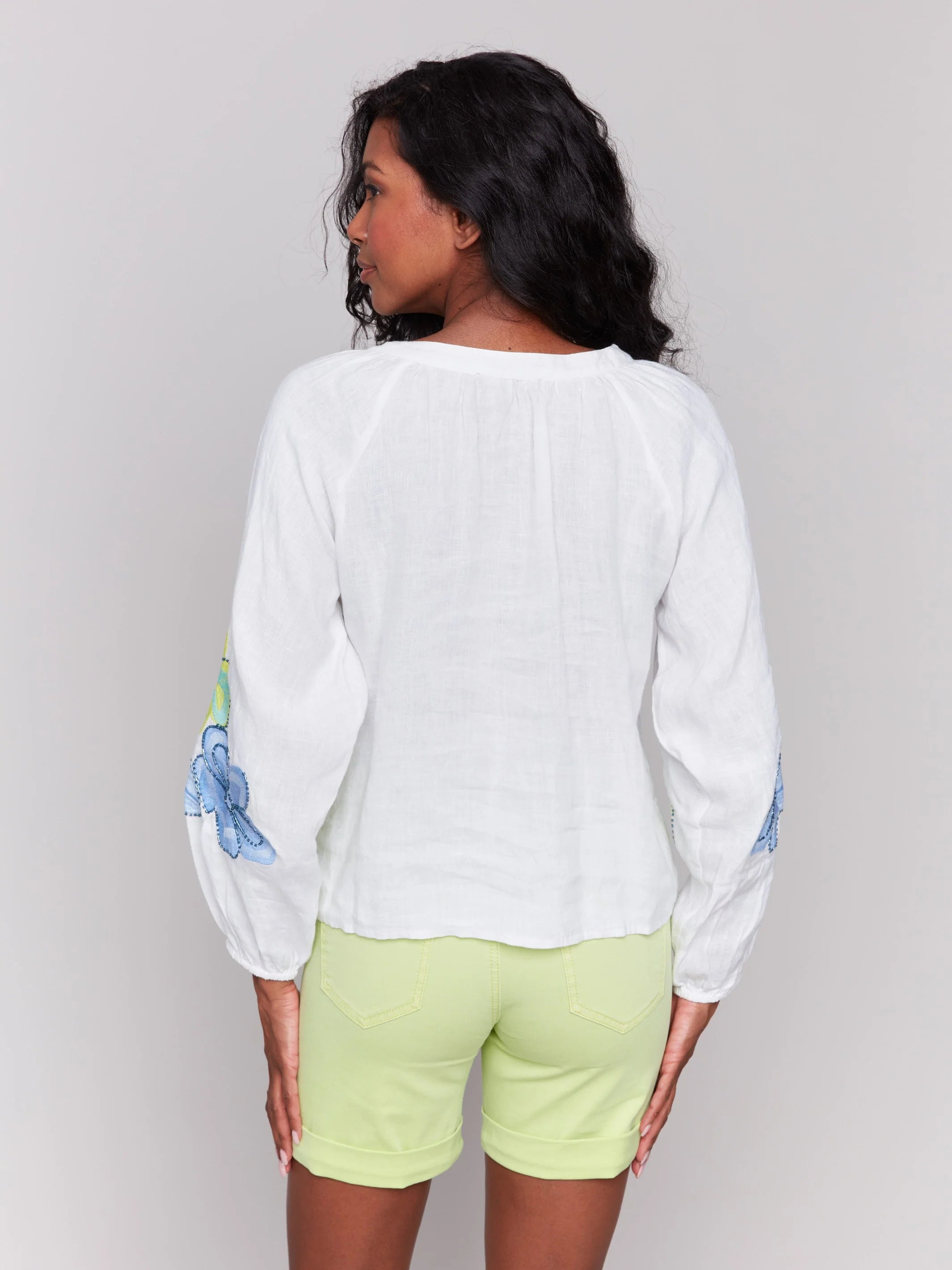 FINAL SALE Charlie B C4600E Cotton-Linen Button-Front Blouse with Embroidery