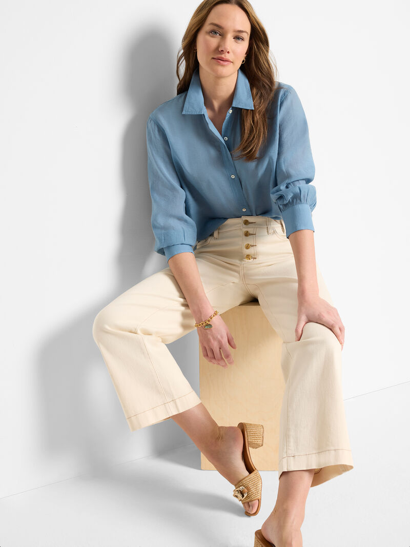 FINAL SALE NIC+ZOE S251849 Boyfriend Shirt 31" Cotton Eliot Wide-Leg