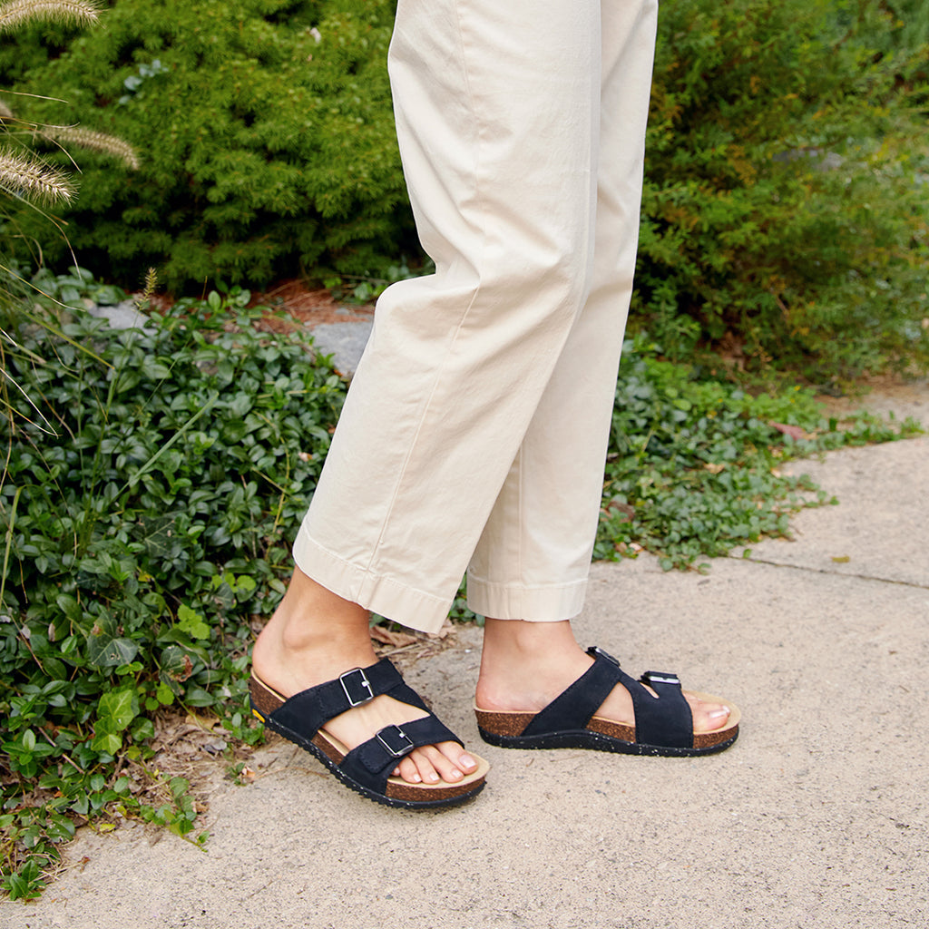 FitFlop Lulu Buckle Leather Cross Slide Sandals