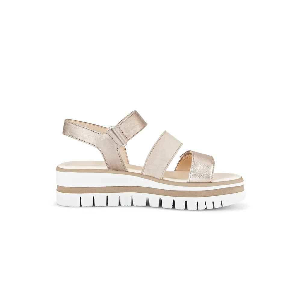 Slip into the ultimate combination of comfort and style with the Gabor 4.620 Avery Sandal. This ultra-light sandal features a Velcro closure for easy adjustment and is crafted in stunning and unique materials. Made in Europe and designed in Germany, this sandal is a must-have for every shoe collection.