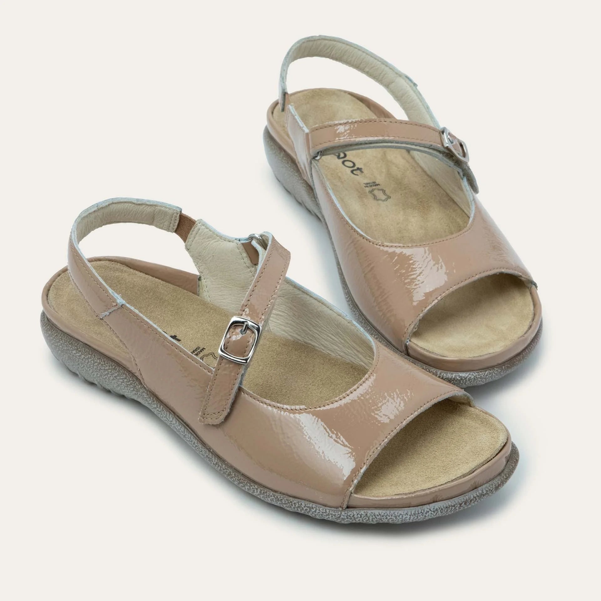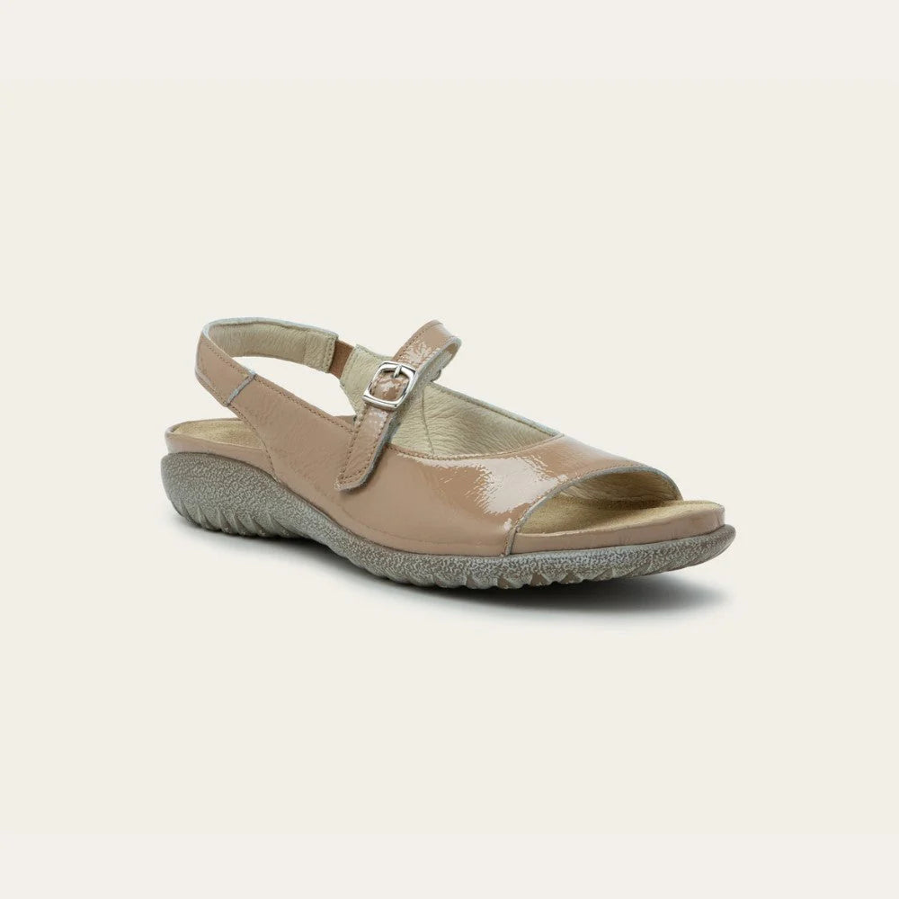 Introducing Toka - the epitome of comfort and versatility in a flat backstrap sandal. This sandal features gore for added flexibility, a faux buckle hook & loop strap for easy adjustment, and full coverage for enhanced support. Perfect for all-day wear, Toka combines practicality with a touch of style, ensuring you step out confidently wherever you go. Crafted with Naot's removable, anatomic cork & latex footbed wrapped in pampering suede, these shoes mold to the shape of your foot with wear, ensuring personalized comfort. The Koru Collection features a 1" polyurethane sole which is extremely lightweight, durable & slip resistant.This collection uses a hand-sewn Strobel construction making it strong and flexible. Plus, it's American Podiatric Medical Association (APMA) accepted for promoting good foot health. Our patented Naot Replacement Footbeds are available for the Whetu, ensuring extended comfort and support.