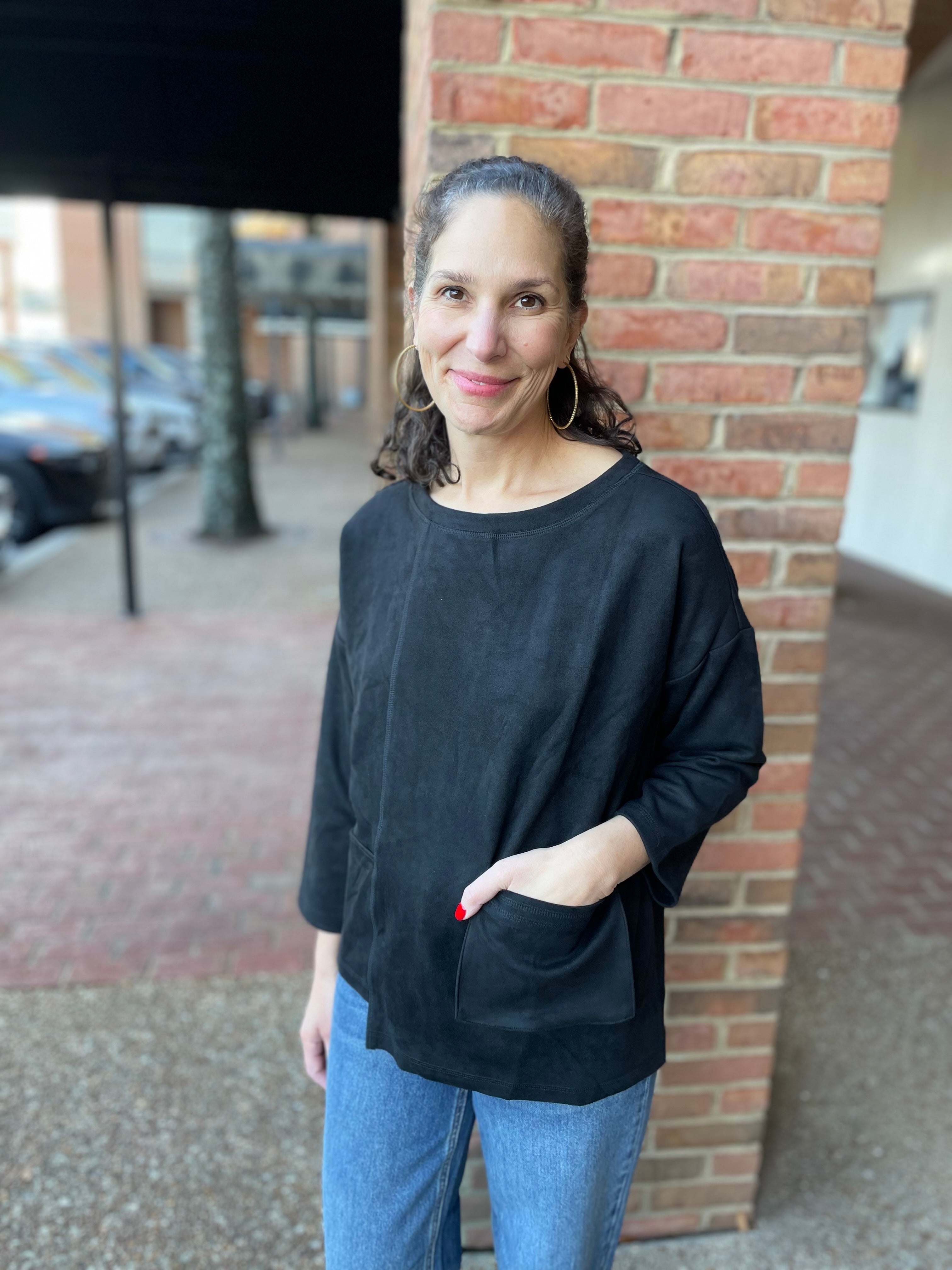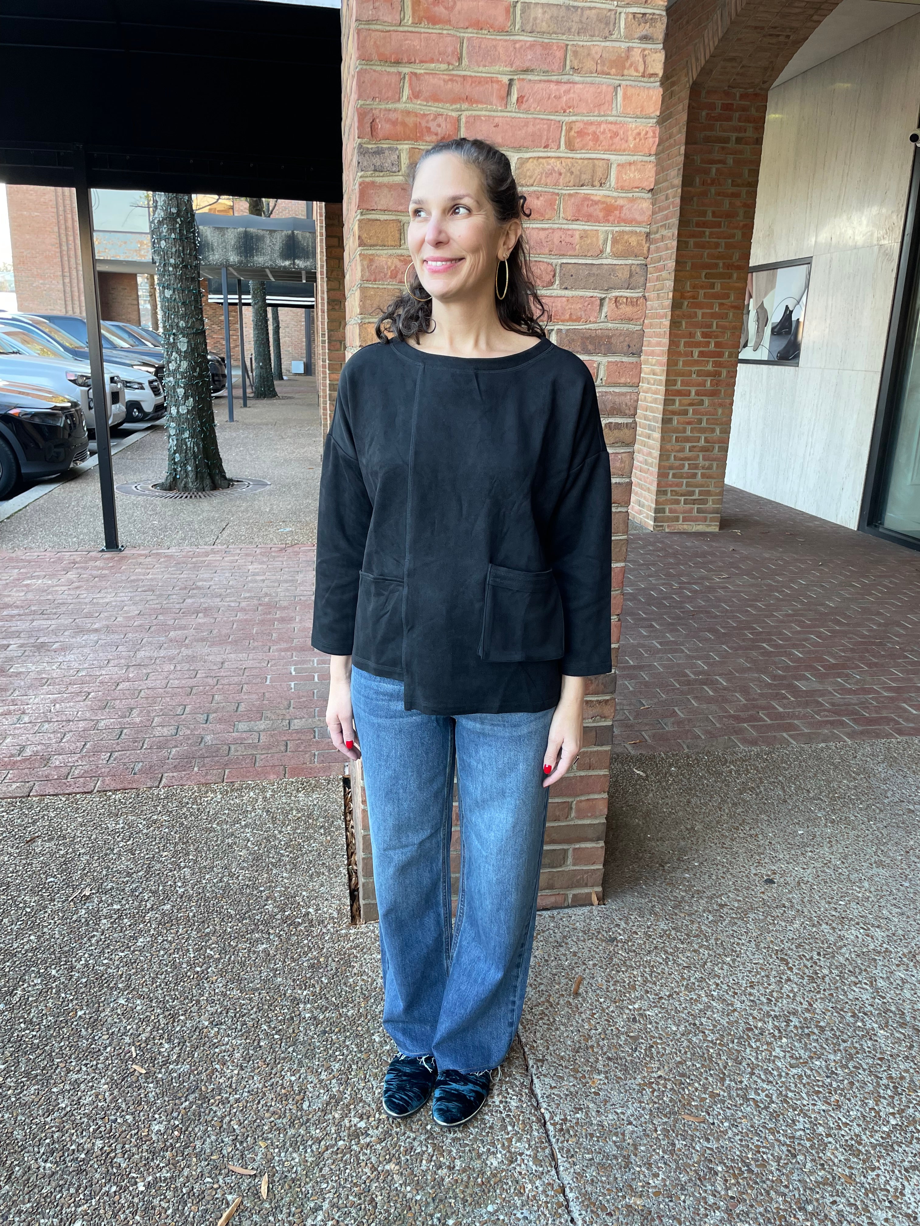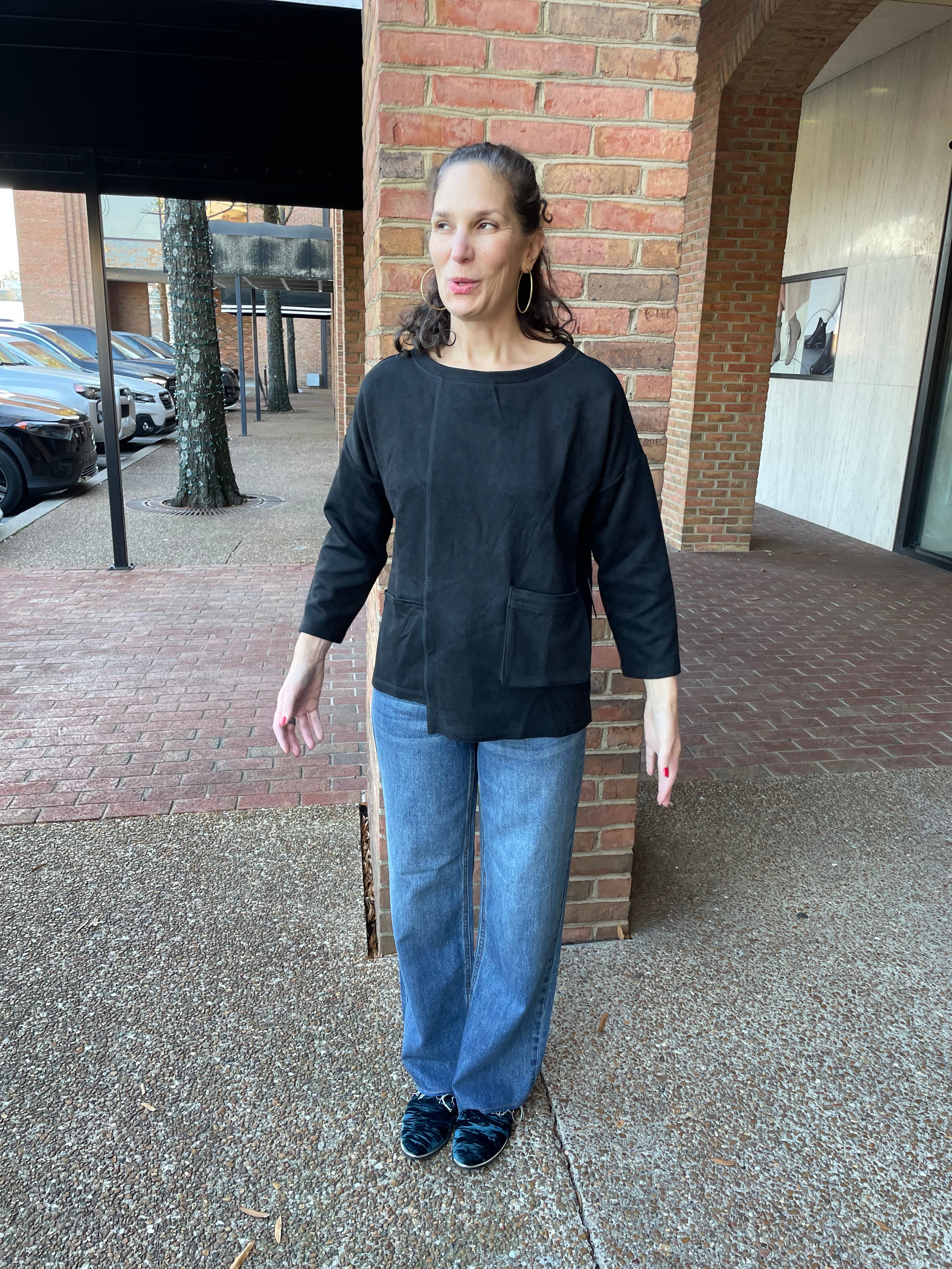APNY K45 Vegan Leather Pull Over w/ Stair Step Hem