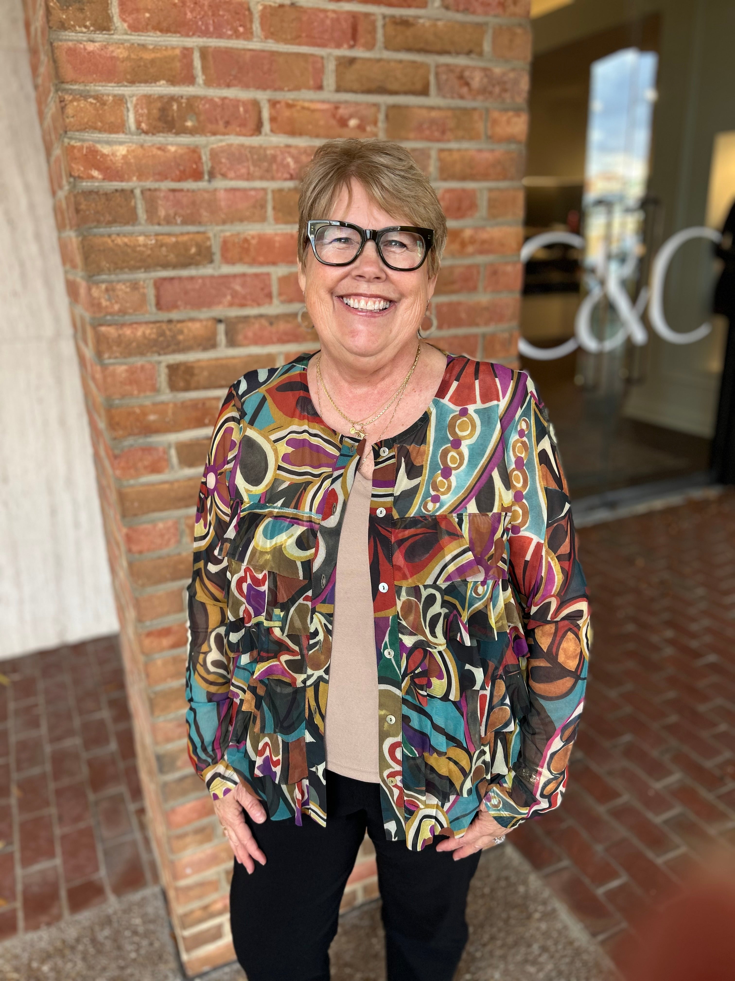 Charlie B C1417 Long Sleeve Top w/ Flower Applique