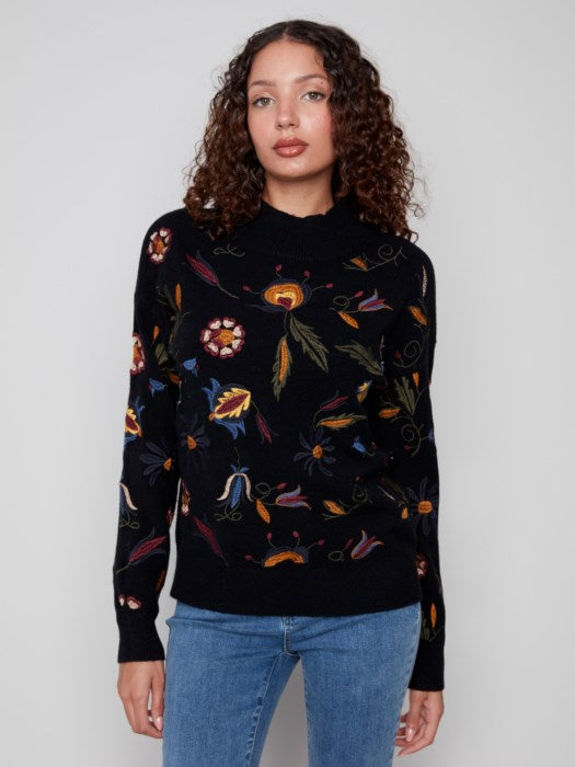 Charlie B C2893 All Over Embroidered Mock Neck Sweater