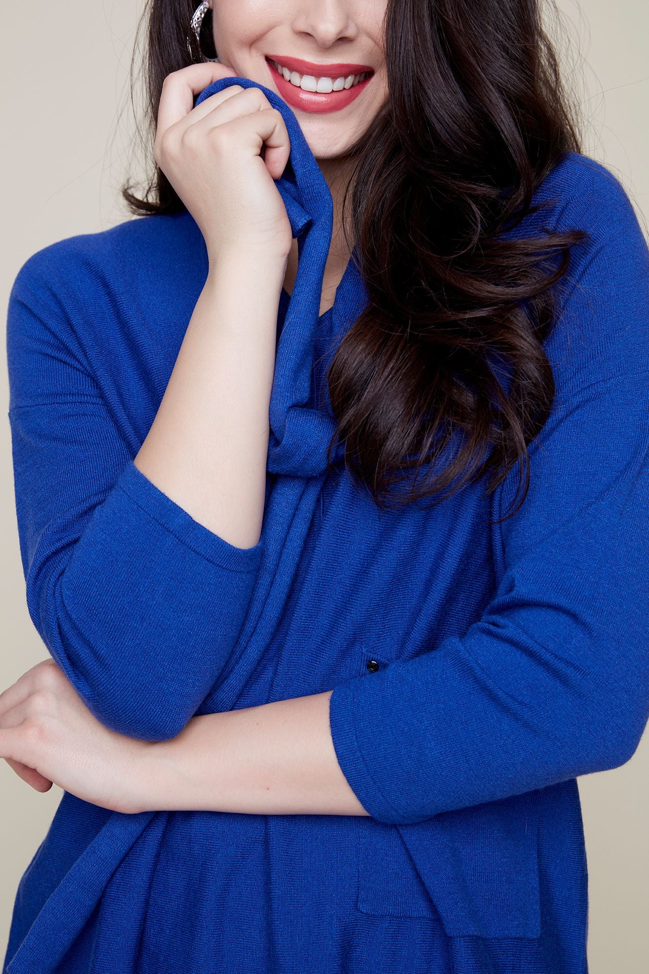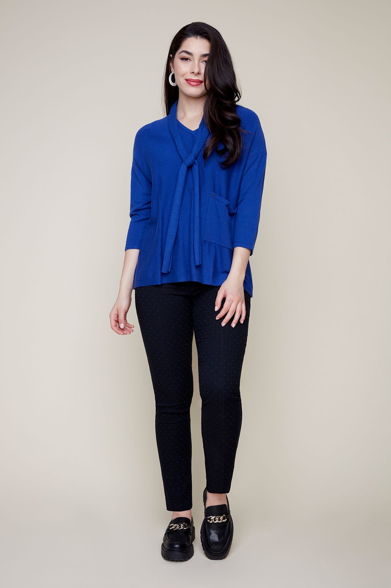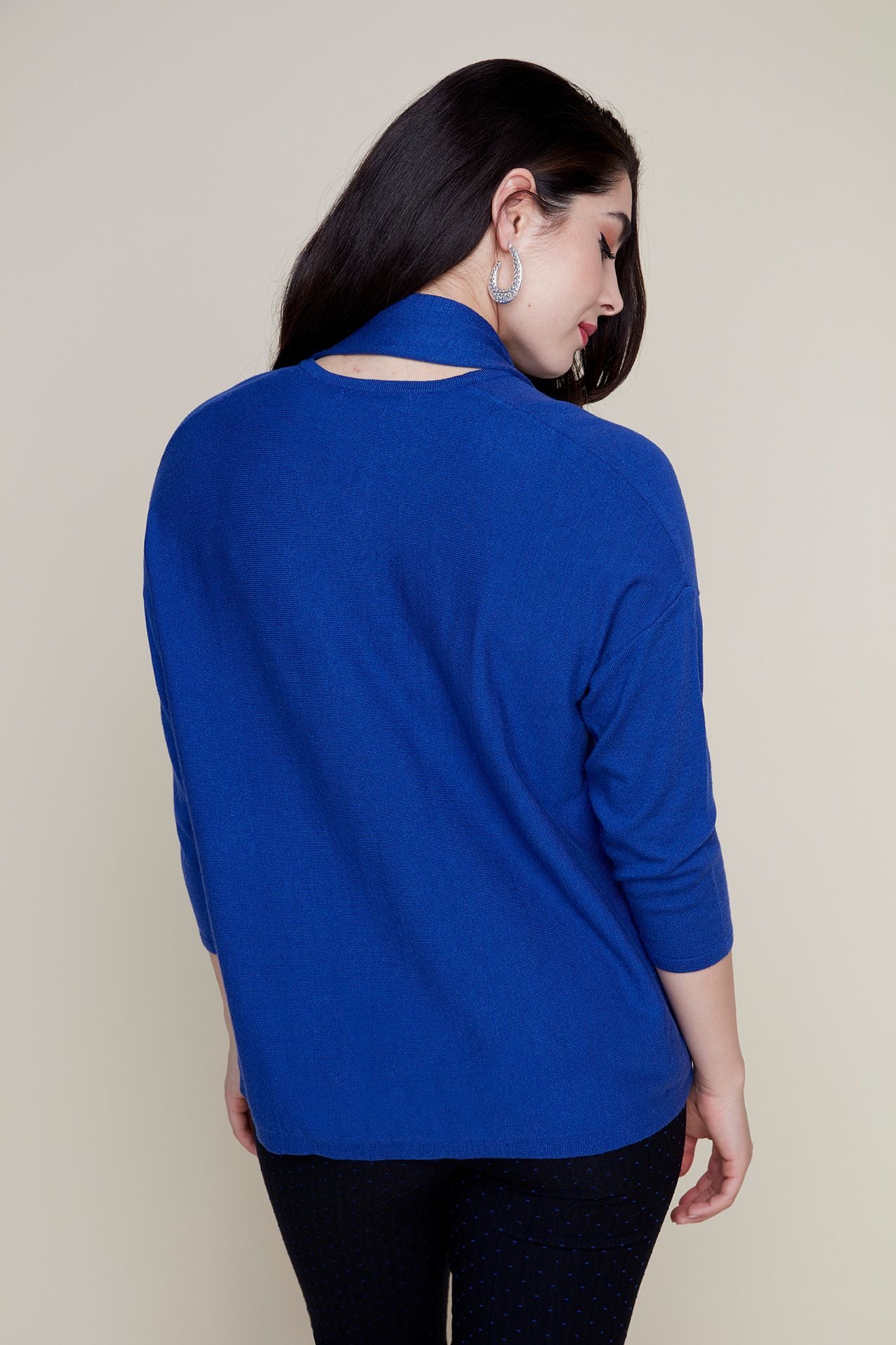 Renuar R6689 V Neck 3/4 Sleeve Sweater w/ Accent Scarf