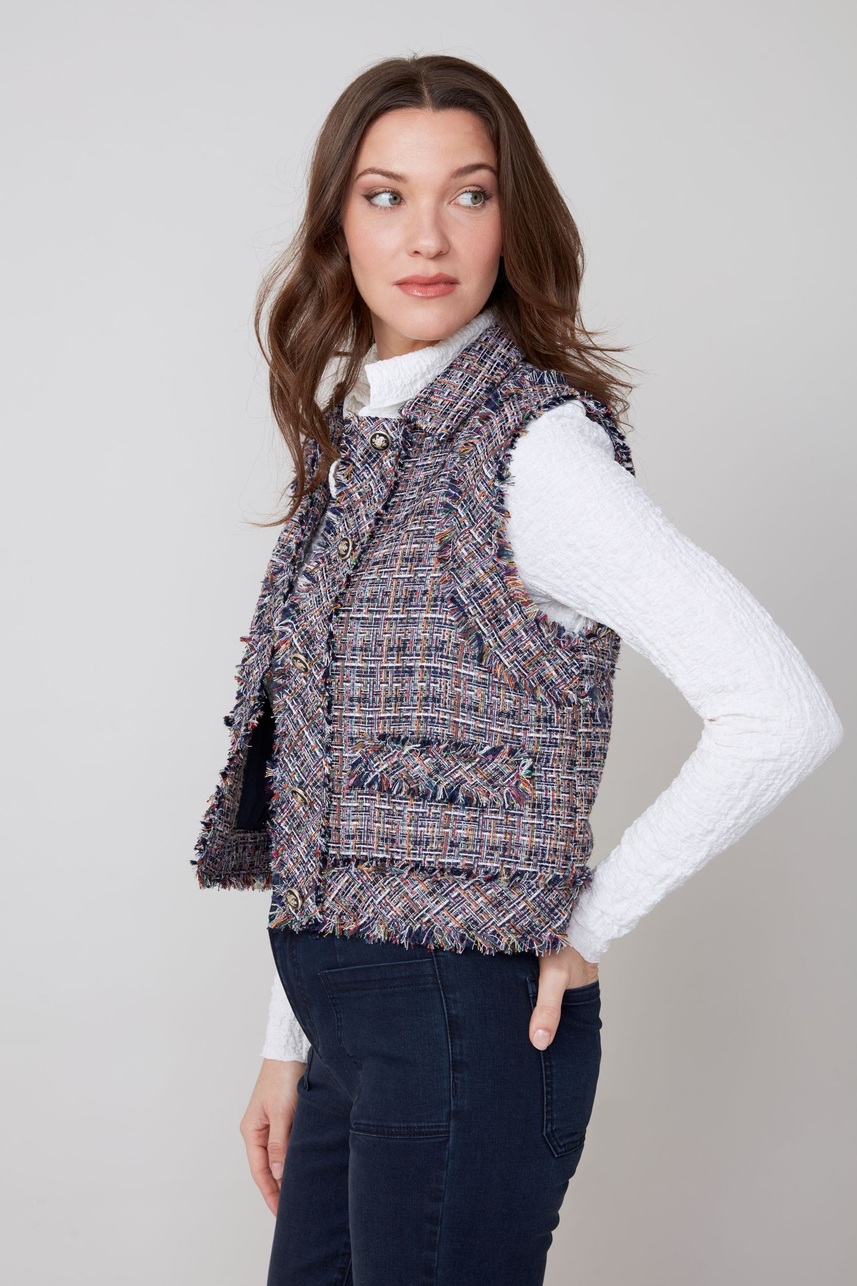 FINAL SALE FDJ 1923839 Tweed Vest in Ivory and Black