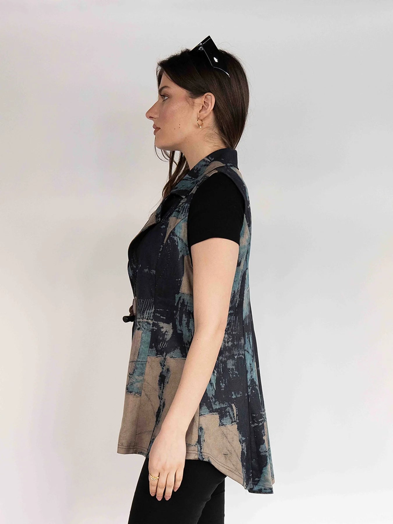 Layer up with effortless style in this charming printed vest! Featuring a classic lapel neck and single-button front, this sleeveless blazer adds instant polish to any outfit. The eye-catching blue print brings personality to your wardrobe, while the structured silhouette flatters and defines. Perfect for dressing up casual looks or adding dimension to your professional ensemble. Versatile, chic, and undeniably cute!