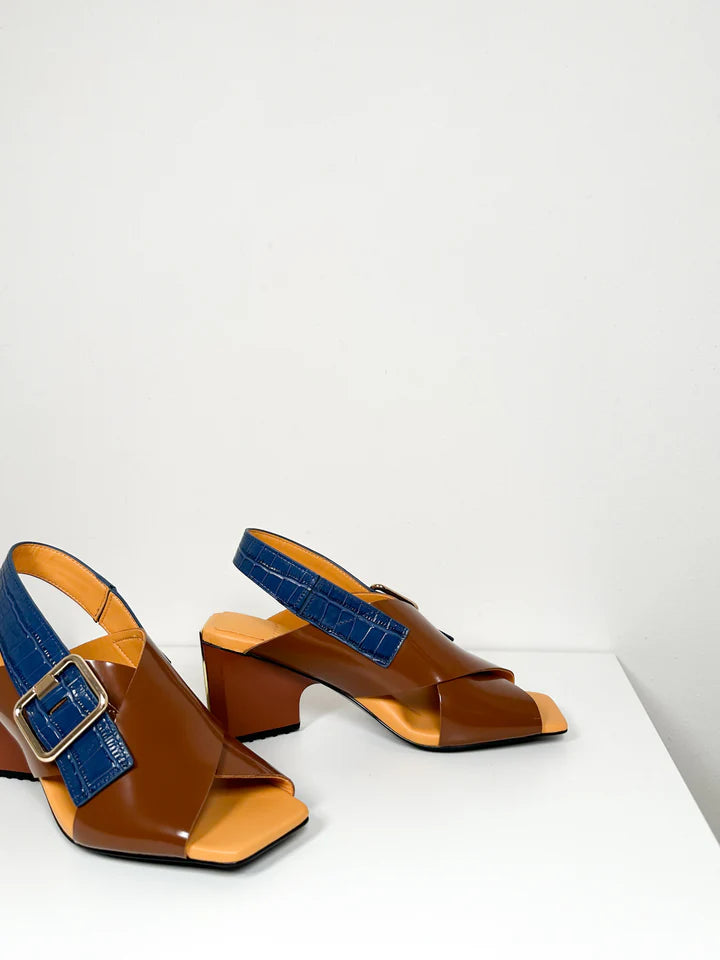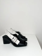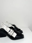 Step into these quirky and fun 4CCCCEES Mirror Verra Slingback shoes! With a block heel, open-toed design, and contrasting straps, these shoes will add a touch of playfulness to any outfit. And don't forget the mirrored panel on the heel, making for a unique and eye-catching look. (Only available in English. Under 50 words. No quotes or exclamation points.)