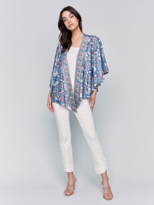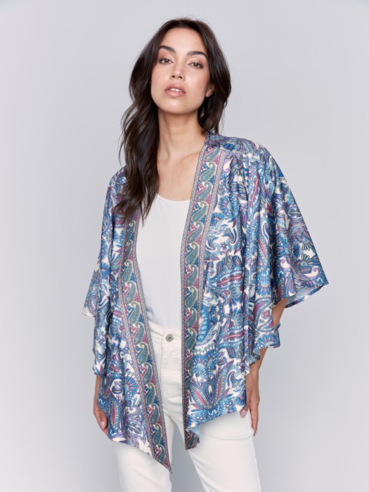 FINAL SALE Charlie B C4567P Printed Wide 3/4 Sleeve Kimono
