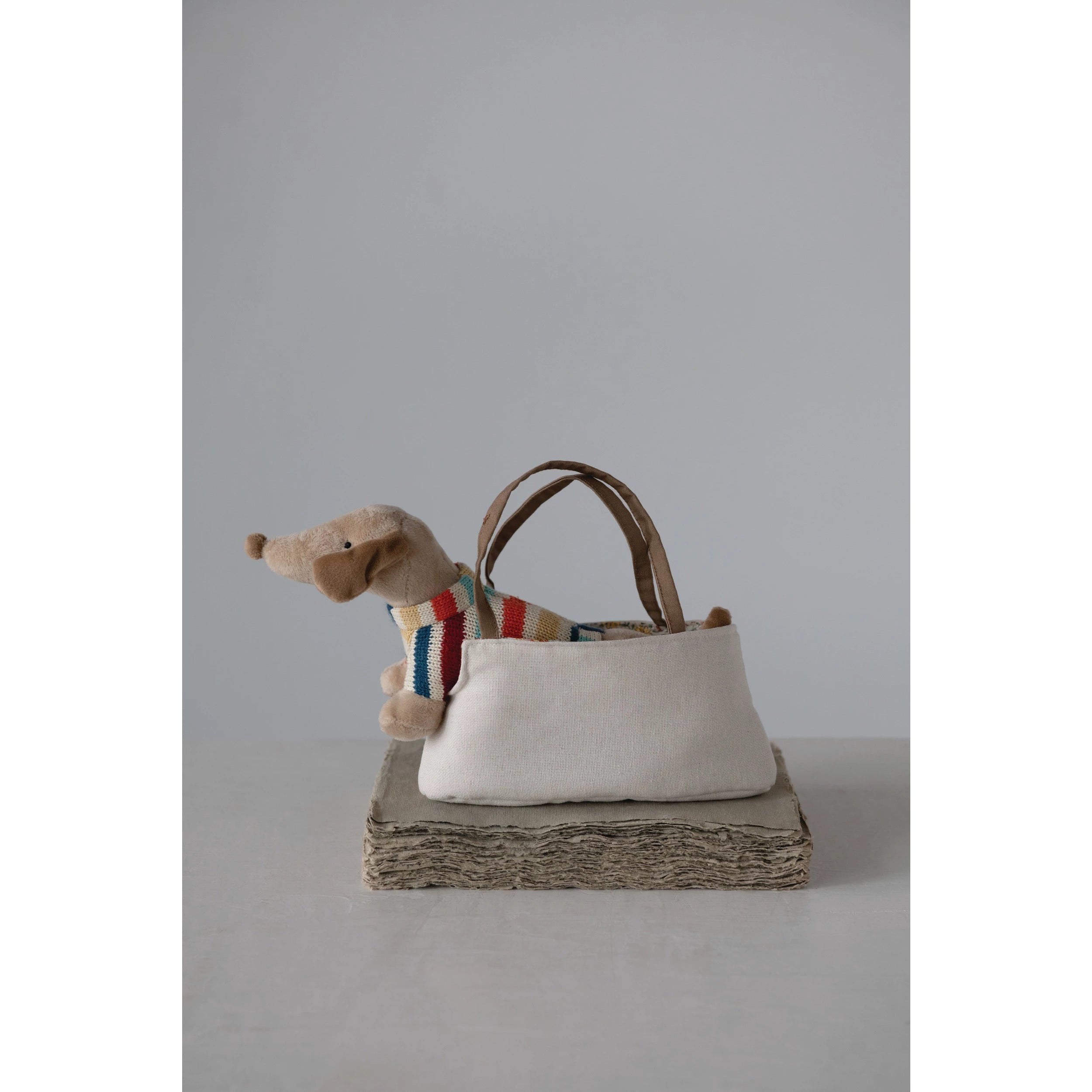 Catalog Name: 11"L x 3"W x 5"H Cotton Dachshund in Sweater w/ Dog Carrier, Multi Color