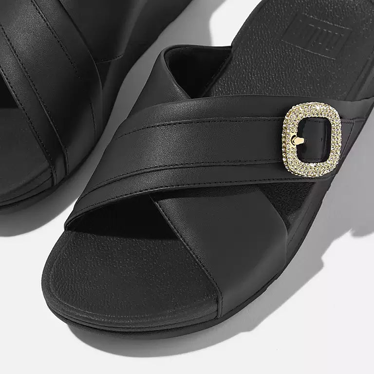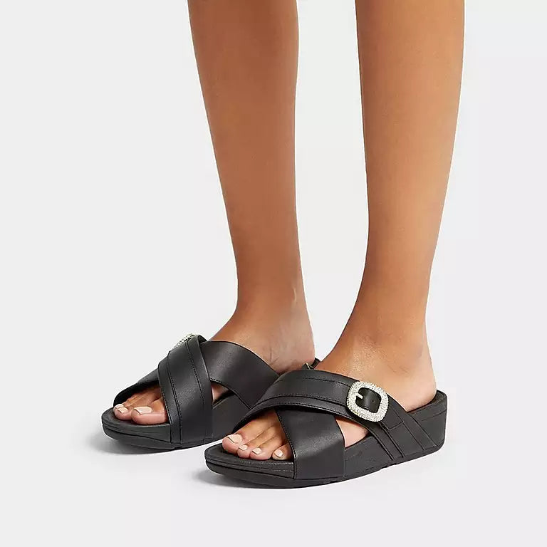 FitFlop Lulu Buckle Leather Cross Slide Sandals