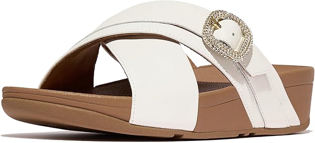 FitFlop Lulu Buckle Leather Cross Slide Sandals