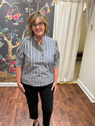 Make a statement this spring with our Lior Holland Ruffle Neck Sleeve Top. Featuring a unique ruffle neck design and stylish blue and yellow stripe pattern, this top will add a touch of fun to any outfit. Perfect for those who love to stand out and make a statement.
