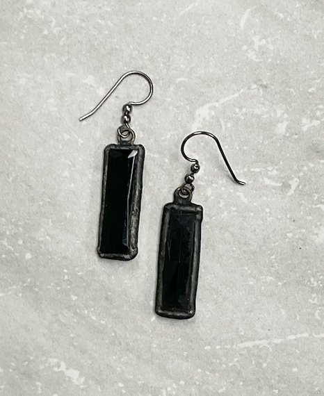 Lula N Lee 925 Rectangular Black Crystal Earrings
