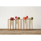 This is a unique way to display a set of plants or flowers. You can even fill each tube with a different color sand or mini colorful stones. The stand can be placed straight or framed around another object or made into a Z shape. There are so many possibilities that you have fun playing with it and seeing which you like best.