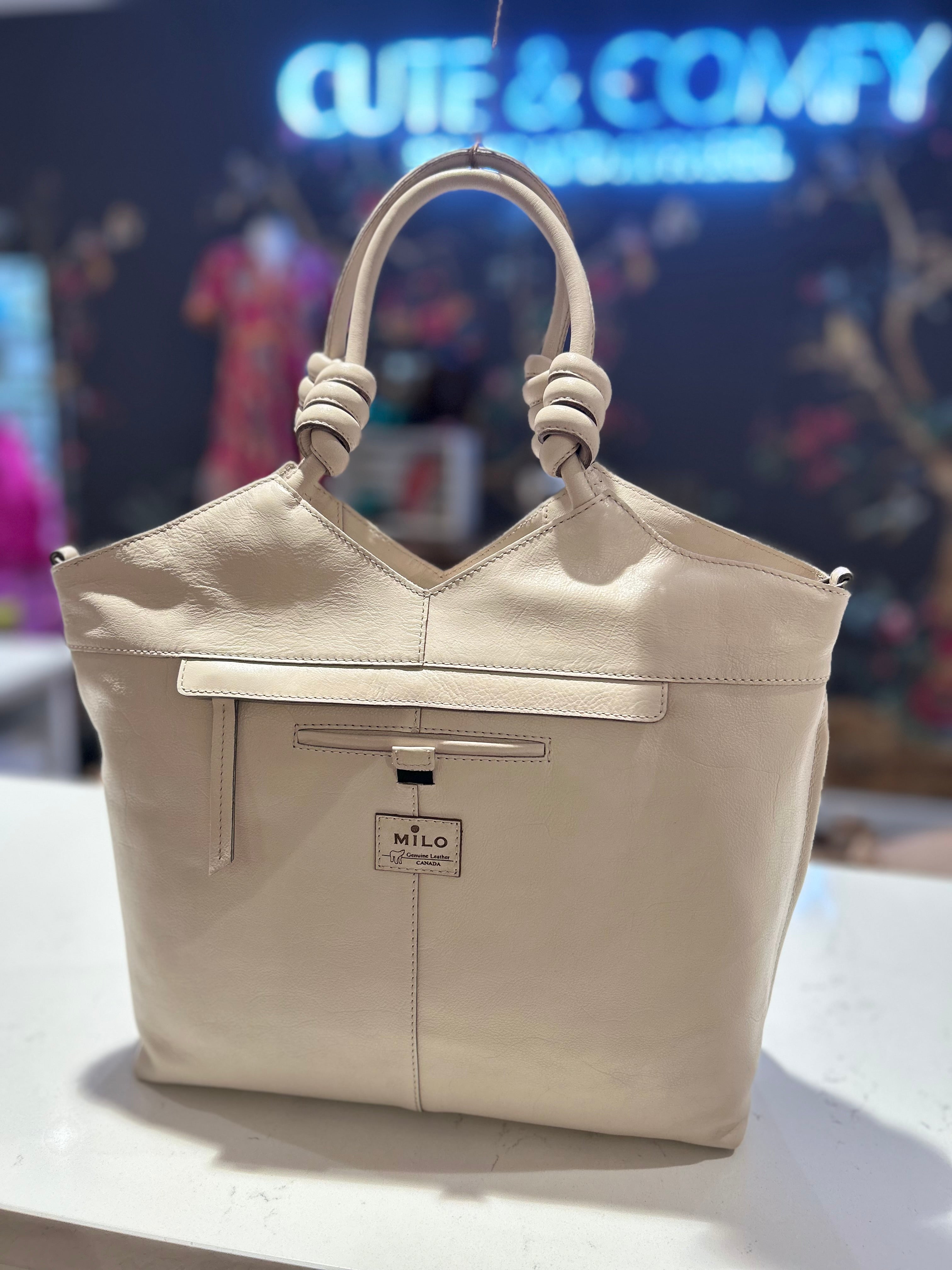Add some fun to your everyday carry with the Milo Expressions 065 Janine Tote Bag. This square tote features a convenient back and size zip pocket, perfect for storing all your essentials. The twist handle adds a playful touch to this quirky bag. Make a statement with every step!