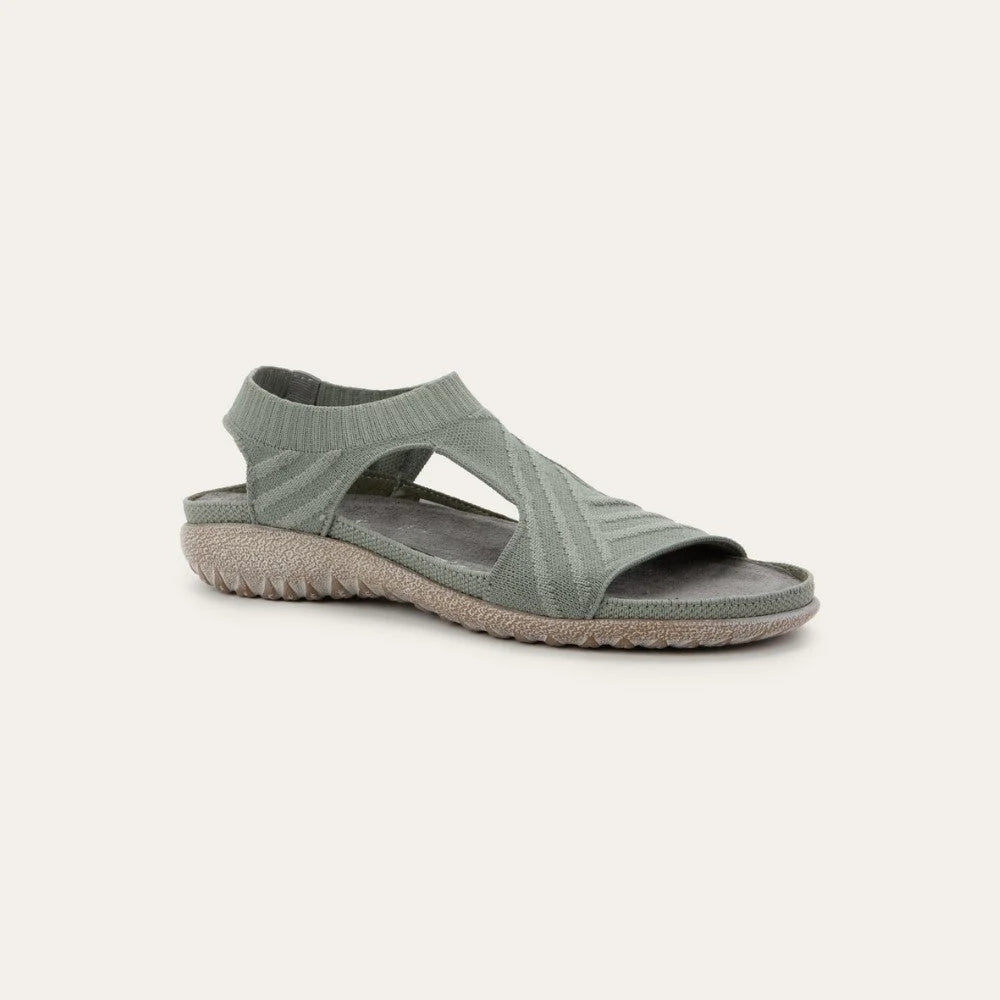 Introducing Kawhia - the ultimate slip-on sandal that blends comfort with sustainable style. Made from vegan knit material, Kawhia offers a breathable and flexible fit. Its minimalist design ensures easy wearability, making it ideal for casual outings or lounging in comfort. Step into Kawhia for a stylish, eco-friendly choice that supports your active lifestyle Crafted with Naot's removable, anatomic cork & latex footbed wrapped in pampering suede, these shoes mold to the shape of your foot with wear, ensuring personalized comfort. The Koru Collection features a 1" polyurethane sole which is extremely lightweight, durable & slip resistant.This collection uses a hand-sewn Strobel construction making it strong and flexible. Plus, it's American Podiatric Medical Association (APMA) accepted for promoting good foot health. Our patented Naot Replacement Footbeds are available for the Kawhia, ensuring extended comfort and support.