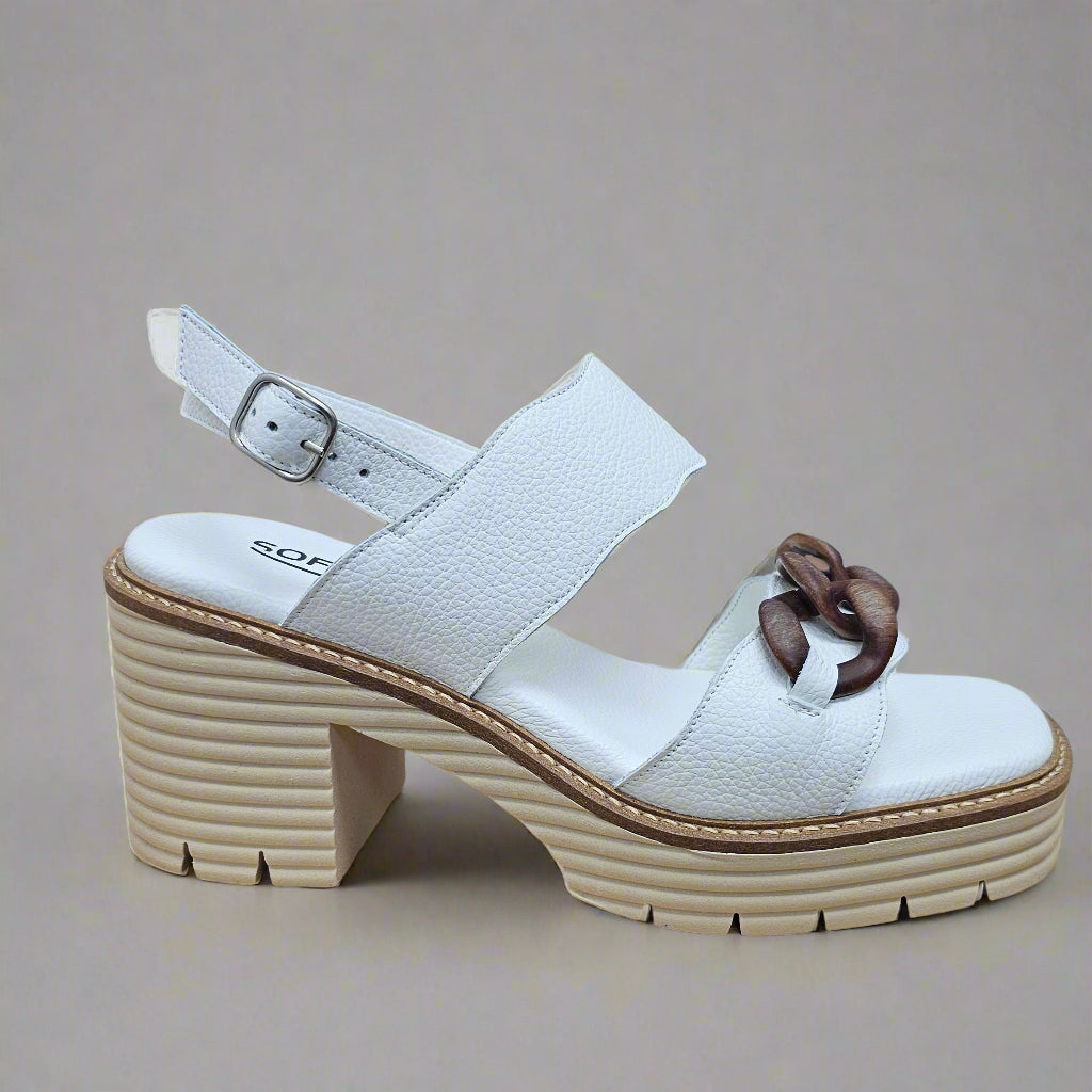 Get ready to feel like you're walking on a cloud with Softwaves' Birdie Sandal! Featuring a comfortable platform feel, a stylishly practical heel strap, and a chic acrylic chain detail. With a 7.5 cm heel height, cushioned footbed, and arch support, these sandals are the perfect mix of fashion and function.