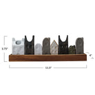 This set of 8 House-Shaped Vases is a whimsical addition to any home. Each piece, with its reactive glaze, presents a unique pattern in a vibrant array of colors, reminiscent of a miniature village. The vases are thoughtfully arranged on a pine wood tray, adding a rustic touch that complements the stoneware's artisanal charm. The set's design is a nod to various styles, from the cozy farmhouse to laid-back boho, making it a versatile choice for those who appreciate a blend of traditional and contemporary elements. The vases range from 2 to 3.75 inches in height. It's not just a decorative item but a conversation starter that brings a sense of community and artistry to the living space.